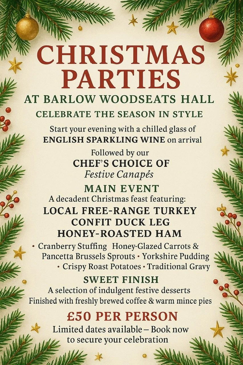 Celebrate the Festive Season at Barlow Woodseats Hall.